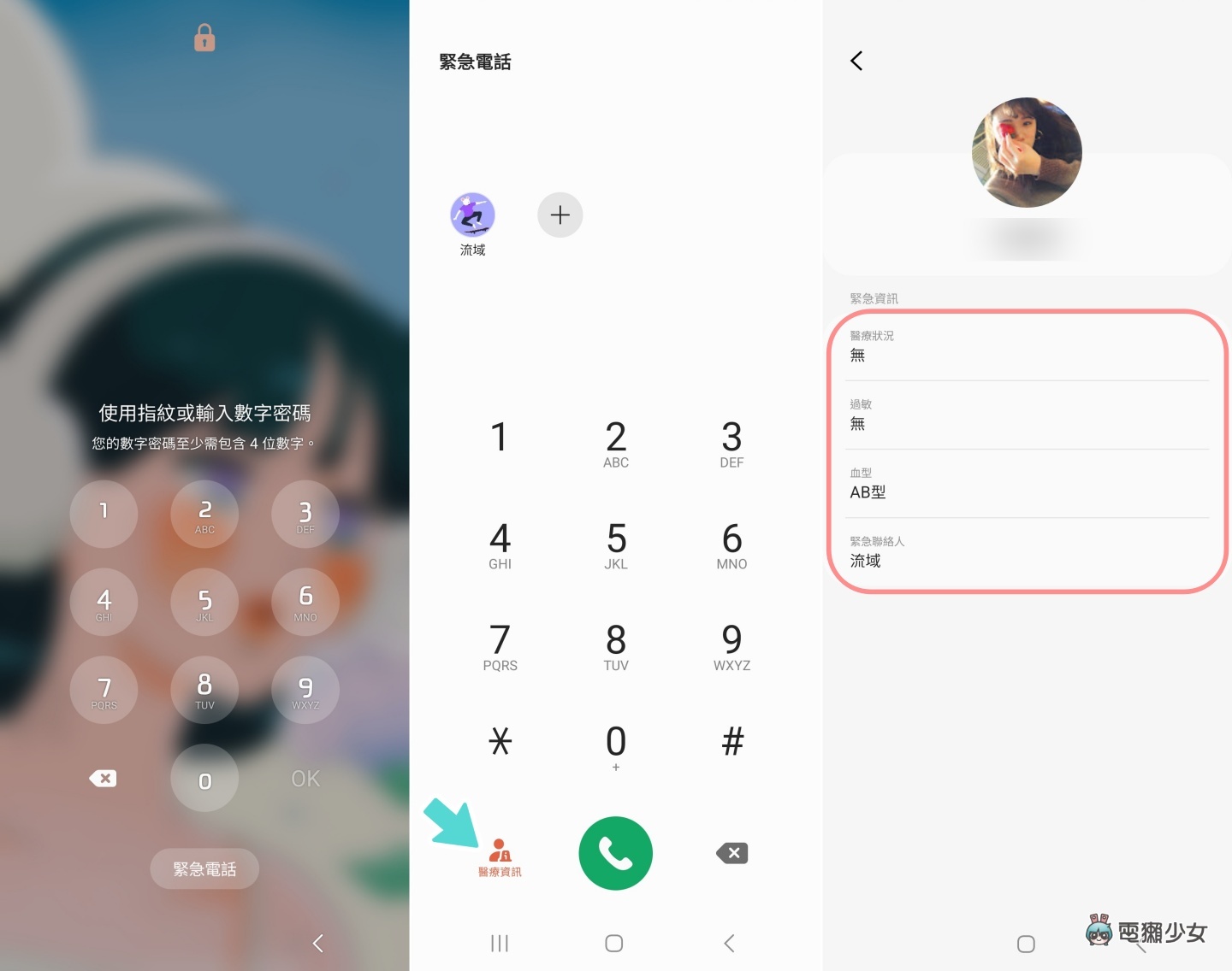 如果你也是三星手机的使用者,除了上述的路径外,还可以从「电话」中点击自己的大头贴,来输入医疗资讯和设定紧急联络人