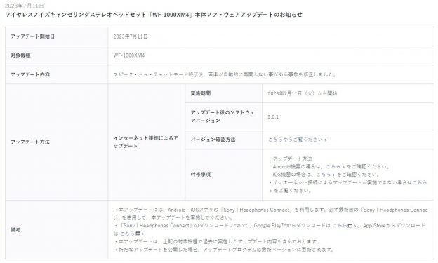 这项更新将解决 WF-1000XM4 在播放音乐过程接听电话後未恢复音乐播放的问题,在现行的版本无法在接听通话後继续播放原本的音乐,需手动再次播放音乐。